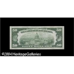 Fr. 2100-C $50 1928 Federal Reserve Note. Gem Crisp U <B>Fr. 2100-C $50 1928 Federal Reserve Note. Gem Crisp Uncirculated.</B></I><BR>A well centered and utterly original beauty from the very scarce Philadelphia district that appears to have been printed this morning. There is one miniscule handling mark that takes this out of the superb class but simply testifies to the note's originality. <BR><BR><B>Important notice:</B> Heritage usually auctions material at the rate of 200-250 lots per hour. On some occasions eBay Live bid software or the Internet may not be able to keep up with the pace of the auction. We recommend placing a realistic absentee bid now as insurance to avoid disappointment. Occasionally the auctioneer may eliminate or reject an eBay Live bid, and the auctioneer may also reopen a lot after the close of the eBay live bidding (usually because we missed an audience bid), and may reject your bid even if it shows you as the winning bidder. By bidding via eBay Live, you agree that Heritage may award the lot to another bidder at its sole discretion under the circumstances described above or any other reasonable circumstances. Since eBay bids are not shown to us until we open the lot on the floor, we treat those bids just like floor bids. In most cases the floor responds before the eBay bid is presented to us, due to Internet lag time, so for consistency we have made it a policy that floor bids are always considered first over tie eBay live bids. Also please note that all Heritage lots purchased through eBay Live carry a 20% Buyer's Premium. Please make sure you read the Terms and Conditions before you bid. This lot is being auctioned in conjunction with a live floor auction by Heritage Galleries & Auctioneers. All final auction and invoice information will be supplied by Heritage Galleries & Auctioneers, and all other information should be considered preliminary. Lot:16415