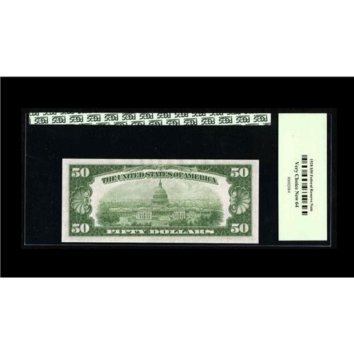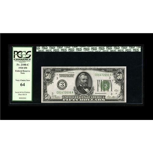 <B>Fr. 2100-C $50 1928 Federal Reserve Note. PCGS Very Choice New 64.</B></I><BR>The obvious freshness of the paper can be detected even through the surfaces of the encapsulation.