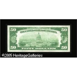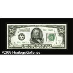 <B>Fr. 2100-E $50 1928 Federal Reserve Note. Choice Crisp Uncirculated.</B></I><BR>One of the tougher districts to obtain, especially in this state of preservation. The bottom margin is a bit tight. Lot:16192