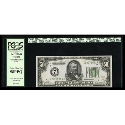 Fr. 2100-G $50 1928 Federal Reserve Note. PCGS Choice A Fr. 2100-G $50 1928 Federal Reserve Note. PC