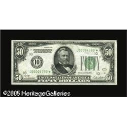 <B>Fr. 2100-J* $50 1928 Federal Reserve Note. Extremely Fine.</B></I><BR>A bright high grade circulated example of this much in demand star, which had a print run of only 24,000 pieces. This is an attractive example which should reach or exceed... Lot:16199
