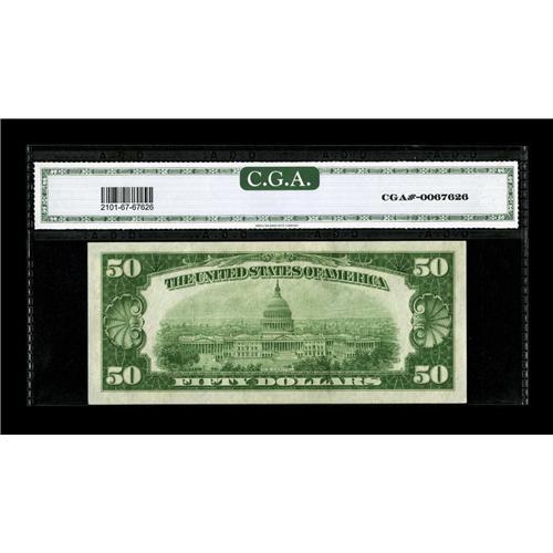 Fr. 2101-C $50 1928A Federal Reserve Note. CGA Gem Unci