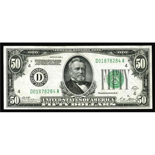 Fr. 2101-D $50 1928A Federal Reserve Note. Choice Crisp Fr. 2101-D $50 1928A Federal Reserve Note. C
