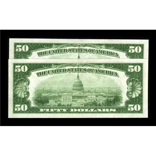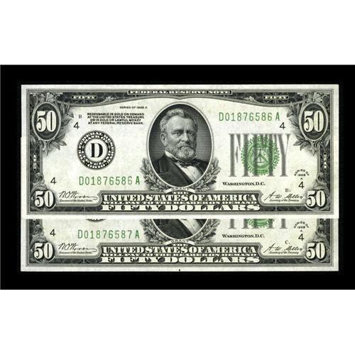 Fr. 2101-D $50 1928A Federal Reserve Notes. Two Consecu