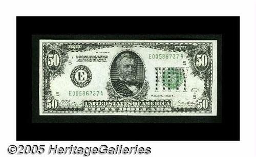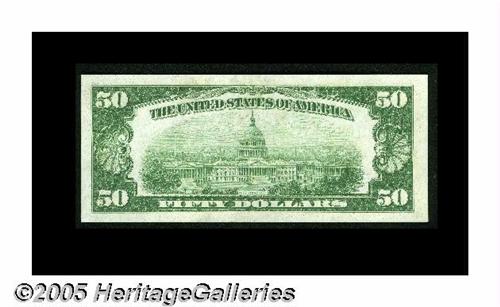<B>Fr. 2101-E $50 1928A Federal Reserve Note. Gem Crisp Uncirculated.</B></I><BR>A well-centered and fully original example.