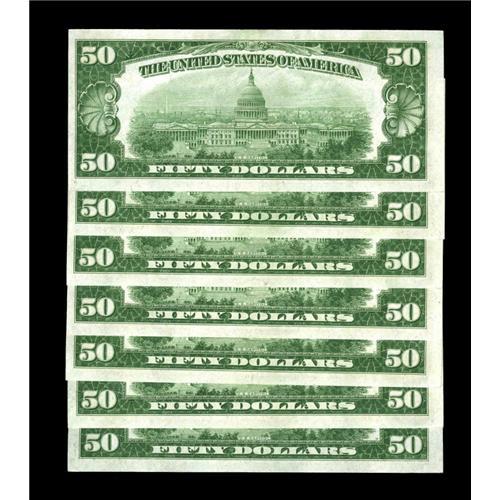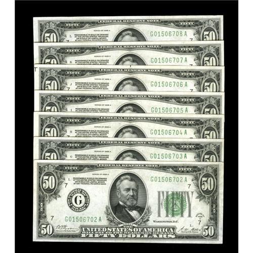 Fr. 2101-G $50 1928A Federal Reserve Notes. Seven Conse Fr. 2101-G $50 1928A Federal Reserve Notes.
