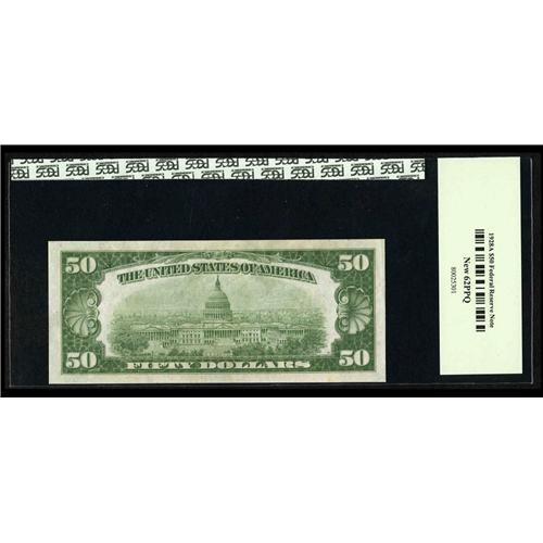 <B>Fr. 2101-H $50 1928A Federal Reserve Note. PCGS New 62PPQ.</B></I><BR>Another fine looking original note that has a bit too much handling for a higher grade.