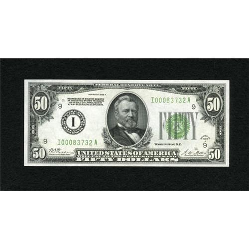 Fr. 2101-I $50 1928A Federal Reserve Note. N/A.