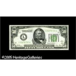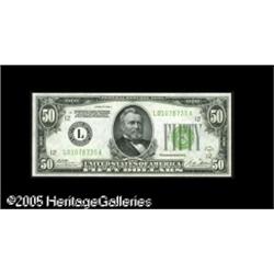 <B>Fr. 2101-L $50 1928A Federal Reserve Notes. Choice Crisp Uncirculated.</B></I><BR>A pair of San Francisco notes within three serial numbers of each other. Both are bright, fresh, and very close to the full Gem grade. 2 notes Lot:16208