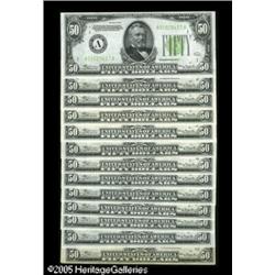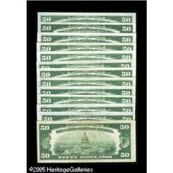 <B>Fr. 2102-A, B, C (3), D, F, G, H, I, J, K, L $50 1934 Light Green Seal Federal Reserve Notes. Very Fine or Better. </B></I><BR>Less than a handful of the notes in this lot exhibit circulation, while the vast majority has been preserved in uncirculated states.<BR> 13 notes Lot:16210