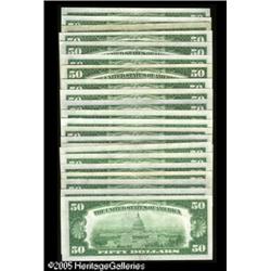 <B>Fr. 2102-A-L (22) $50 1934 Federal Reserve Notes. Fine or Better.</B></I><BR>The grading ladder of Fine, VF, XF, and AU will have anywhere from one to three notes on each step, leaving more than half of the notes in this lot residing at the Crisp Uncirculated or higher level.<BR> 22 notes Lot:16211