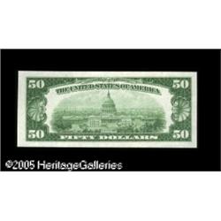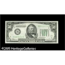 <B>Fr. 2102-B* $50 1934 Federal Reserve Note. Choice Crisp Uncirculated.</B></I><BR>An attractive and well centered star note, with its only detraction a miniscule spot in the top margin. Lot:16213