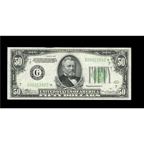 Fr. 2102-G* $50 1934 Federal Reserve Note. Gem Crisp Un Fr. 2102-G* $50 1934 Federal Reserve Note. G