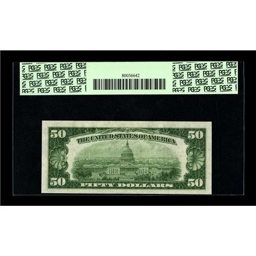 <B>Fr. 2102-G* $50 1934 Federal Reserve Note. PCGS Gem New 65PPQ.</B></I><BR>Broad margins are noted on this Gem $50. Few $50 Stars in any of the 1934 Series are worth less than four figures according to price guides.<BR><I>From The Bill and Kathy Stella Currency Collection</B></I><BR><BR><b>Shipping:</b> Coin/Currency (<a target="_blank" href="http://www.heritageauctions.com/common/shipping.php">view shipping information</a>)