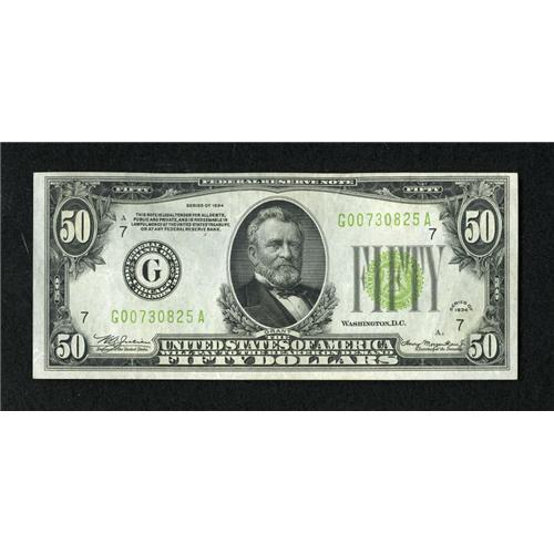 Fr. 2102-G $50 1934 LGS Federal Reserve Note. Ch