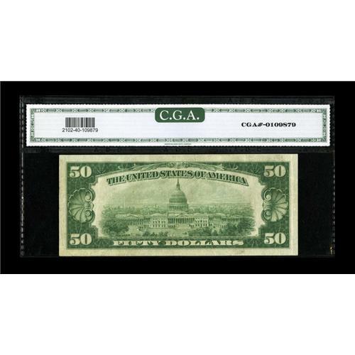 Fr. 2102-J* $50 1934 Federal Reserve Note. CGA Extremel