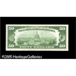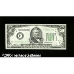 <B>Fr. 2103-F* $50 1934A Federal Reserve Note. Extremely Fine.</B></I><BR>A just plain rare star, with this the only example listed in Oakes from the Atlanta district. There is a very light blue ink stain on the face that affects little. Lot:16228