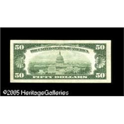 <B>Fr. 2104-D* $50 1934B Federal Reserve Note. Very Fine.</B></I><BR>A second very tough star, with this example showing an ink spot on the portrait and a stamped bank number on the face. Lot:16233