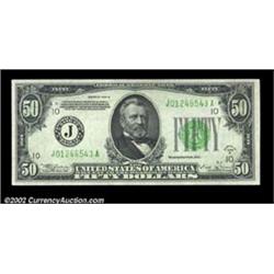 Fr. 2104-J $50 1934B Federal Reserve Note. Gem Crisp Uncirculated.Another very scarce series, especi