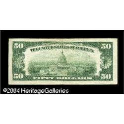 Fr. 2105-B* $50 1934-C Federal Reserve Note. Very Fine- <B>Fr. 2105-B* $50 1934C Federal Reserve Note. Very Fine-Extremely Fine.</B></I><BR>A very scarce star note in a series where stars are few and quite far between. <BR><BR><B>Important notice:</B> Heritage usually auctions material at the rate of 200-250 lots per hour. On some occasions eBay Live bid software or the Internet may not be able to keep up with the pace of the auction. We recommend placing a realistic absentee bid now as insurance to avoid disappointment. Occasionally the auctioneer may eliminate or reject an eBay Live bid, and the auctioneer may also reopen a lot after the close of the eBay live bidding (usually because we missed an audience bid), and may reject your bid even if it shows you as the winning bidder. By bidding via eBay Live, you agree that Heritage may award the lot to another bidder at its sole discretion under the circumstances described above or any other reasonable circumstances. Since eBay bids are not shown to us until we open the lot on the floor, we treat those bids just like floor bids. In most cases the floor responds before the eBay bid is presented to us, due to Internet lag time, so for consistency we have made it a policy that floor bids are always considered first over tie eBay live bids. Also please note that all Heritage lots purchased through eBay Live carry a 20% Buyer's Premium. Please make sure you read the Terms and Conditions before you bid. This lot is being auctioned in conjunction with a live floor auction by Heritage Galleries & Auctioneers. All final auction and invoice information will be supplied by Heritage Galleries & Auctioneers, and all other information should be considered preliminary. Lot:16420