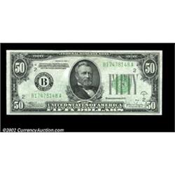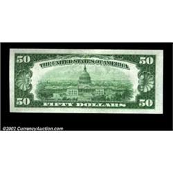 Fr. 2105-B $50 1934C Federal Reserve Note. Choice Crisp Uncirculated.The back centering is just a touch off. Important notice: We expect to be auctioning lots at the rate of 200-250 per hour. Sometimes eBay Premier live bid software cannot keep up with that pace, so we strongly recommend that you place a realistic proxy bid now as insurance to avoid disappointment. Also please note that all Heritage/CAA lots purchased through eBay Premier carry a 20% Buyer's Premium. Please make sure you read the Terms and Conditions.