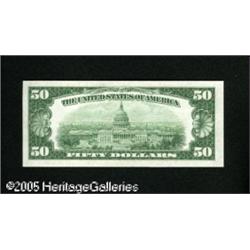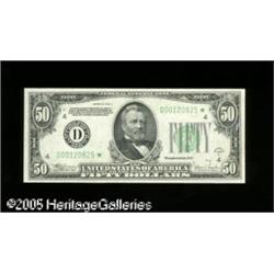 <B>Fr. 2105-D* $50 1934C Federal Reserve Note. Choice About Uncirculated.</B></I><BR>A lovely example of this very tough star. This piece is fully Choice CU save for a ghost of a centerfold. Lot:16237