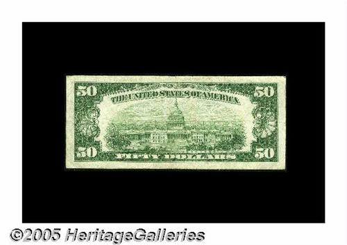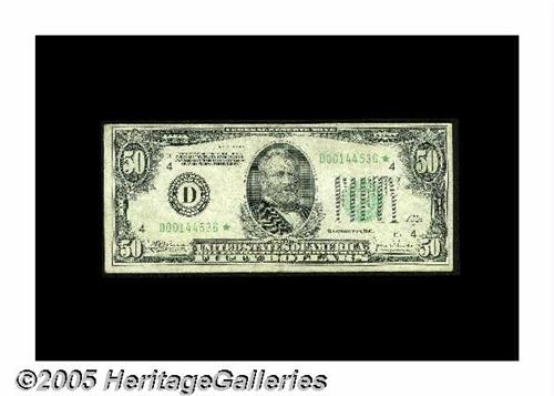 <B>Fr. 2105-D* $50 1934C Federal Reserve Note. Very Fine+.</B></I><BR>A very scarce star example from the well-collected Cleveland district. This is an evenly circulated and problem-free example which is certain to please.