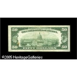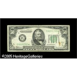 <B>Fr. 2105-E* $50 1934C Federal Reserve Note. Very Fine.</B></I><BR>A seldom seen star. This piece has a few pinholes and a stain which shows on both the face and back. Lot:16238