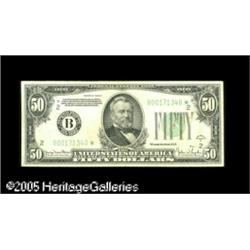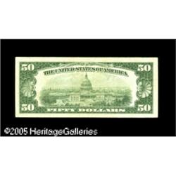 <B>Fr. 2106-B* $50 1934D Federal Reserve Note. Fine-Very Fine.</B></I><BR>One of two New York 1934D stars in this collection. The grade is lowered due to an inked number on the front that someone has attempted to remove. Lot:16243