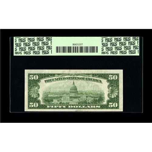 <B>Fr. 2106-B* $50 1934D Federal Reserve Note. PCGS Choice About New 55PPQ.</B></I><BR>A lovely example of this very rare star, which may well be the nicest specimen we've ever seen for sale in this series from the New York district. The centering is more than acceptable, and the note's originality is attested to by the addition of the coveted PPQ designation to the PCGS holder.<BR><BR><b>Shipping:</b> Coin/Currency (<a target="_blank" href="http://www.heritageauctions.com/common/shipping.php">view shipping information</a>)