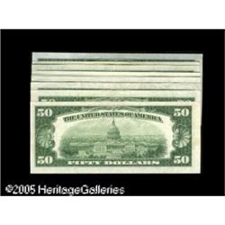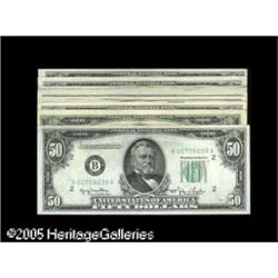 <B>Fr. 2107-B (2), C, D, G, I (3), K, L (2) $50 Mule 1950 Federal Reserve Notes. Very Fine or Better.</B></I><BR>Lightly circulated is the name of the game for this lot that has a couple of VF notes and a couple of CU notes mixed in. An ink mark is found on the back of one of the Minneapolis notes.<BR> 11 notes Lot:16247