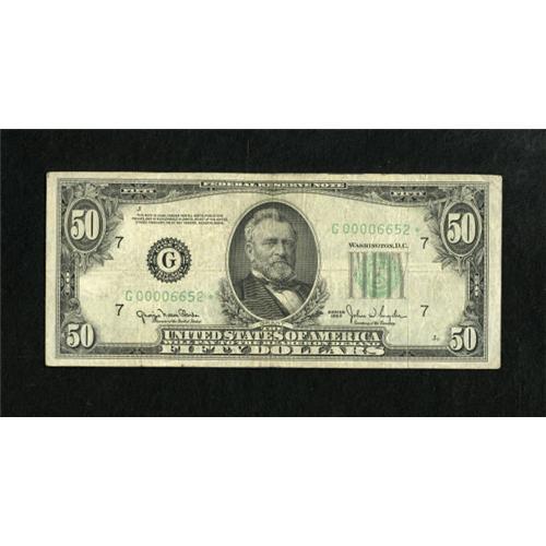 Fr. 2107-G* $50 1950 Federal Reserve Note.