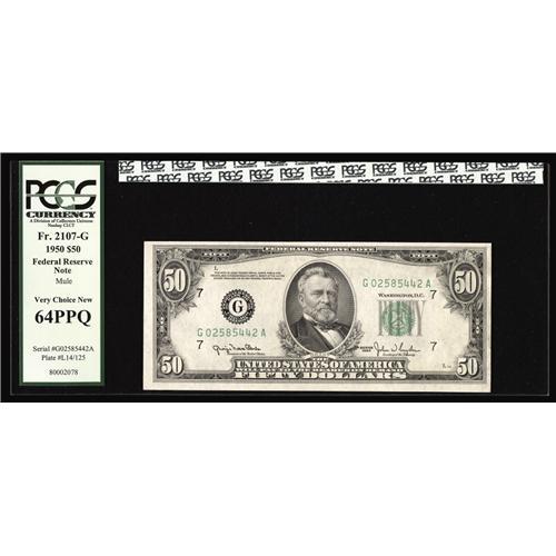 Fr. 2107-G $50 1950 Mule Federal Reserve Note. PCGS Ver Fr. 2107-G $50 1950 Mule Federal Reserve Not