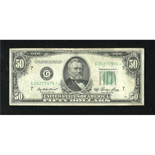 Fr. 2108-G* $50 1950A Federal Reserve Note. Extr