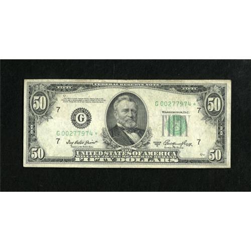 Fr. 2108-G* $50 1950A Federal Reserve Note.