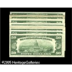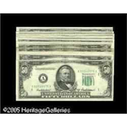 <B>Fr. 2109-A, B, (3), C (3), D, E, G, H, J, L $50 1950B Federal Reserve Notes. Near Complete Regular District Set. Choice Crisp Uncirculated or Better.</B></I><BR>Nine different districts are represented in this lot from this series that saw only ten districts issue notes. The only note missing is a Dallas $50. Also, there is just one note below the assigned grade, and that is a Philadelphia note in VG.<BR> 13 notes Lot:16254