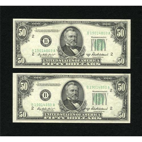 Fr. 2109-B $50 1950B Federal Reserve Notes. Two