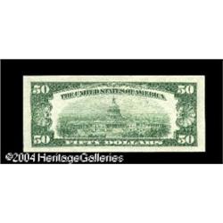 Fr. 2109-C $50 1950-B Federal Reserve Note. Gem Crisp U <B>Fr. 2109-C $50 1950B Federal Reserve Note. Gem Crisp Uncirculated.</B></I><BR>This pristine note has jumbo margins and is blessed with pack fresh paper as well <BR><BR><B>Important notice:</B> Heritage usually auctions material at the rate of 200-250 lots per hour. On some occasions eBay Live bid software or the Internet may not be able to keep up with the pace of the auction. We recommend placing a realistic absentee bid now as insurance to avoid disappointment. Occasionally the auctioneer may eliminate or reject an eBay Live bid, and the auctioneer may also reopen a lot after the close of the eBay live bidding (usually because we missed an audience bid), and may reject your bid even if it shows you as the winning bidder. By bidding via eBay Live, you agree that Heritage may award the lot to another bidder at its sole discretion under the circumstances described above or any other reasonable circumstances. Since eBay bids are not shown to us until we open the lot on the floor, we treat those bids just like floor bids. In most cases the floor responds before the eBay bid is presented to us, due to Internet lag time, so for consistency we have made it a policy that floor bids are always considered first over tie eBay live bids. Also please note that all Heritage lots purchased through eBay Live carry a 20% Buyer's Premium. Please make sure you read the Terms and Conditions before you bid. This lot is being auctioned in conjunction with a live floor auction by Heritage Galleries & Auctioneers. All final auction and invoice information will be supplied by Heritage Galleries & Auctioneers, and all other information should be considered preliminary. Lot:16422