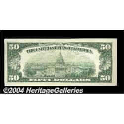 Fr. 2109-E* $50 1950-B Federal Reserve Note. Gem Crisp Uncirculated.A very scarce Richmond district star in absolutely pristine condition, with incredible freshness, hugely visible embossing, and absolute originality. <BR><BR><B>Important notice:</B> Heritage usually auctions material at the rate of 200-250 lots per hour. On some occasions eBay Live bid software or the Internet may not be able to keep up with the pace of the auction. We recommend placing a realistic absentee bid now as insurance to avoid disappointment. Occasionally the auctioneer may eliminate or reject an eBay Live bid, and the auctioneer may also reopen a lot after the close of the eBay live bidding (usually because we missed an audience bid), and may reject your bid even if it shows you as the winning bidder. By bidding via eBay Live, you agree that Heritage may award the lot to another bidder at its sole discretion under the circumstances described above or any other reasonable circumstances. Since eBay bids are not shown to us until we open the lot on the floor, we treat those bids just like floor bids. In most cases the floor responds before the eBay bid is presented to us, due to Internet lag time, so for consistency we have made it a policy that floor bids are always considered first over tie eBay live bids. Also please note that all Heritage lots purchased through eBay Live carry a 20% Buyer's Premium. Please make sure you read the Terms and Conditions before you bid. <BR><BR><B>IMPORTANT ANNOUNCEMENT ABOUT RESERVES:</B> Heritage now divulges all reserves on its web site 7 days before every auction. If you want to know whether the reserve on this lot has been met, and if not, what the reserve amount is, please visit this lot page on the HeritageCoin.com web site, or email: bid@HeritageGalleries.com