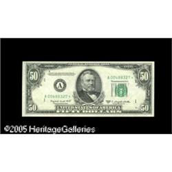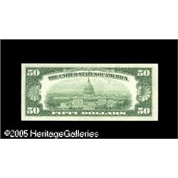 <B>Fr. 2110-A* $50 1950C Federal Reserve Note. Gem Crisp Uncirculated.</B></I><BR>Punch through embossing is seen on the star for the upper serial number on this Boston $50. Lot:16258