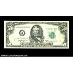 Fr. 2111-A $50 1950D Federal Reserve Note. Gem Crisp Uncirculated.Fresh and perfectly centered. Important notice: We expect to be auctioning lots at the rate of 200-250 per hour. Sometimes eBay Premier live bid software cannot keep up with that pace, so we strongly recommend that you place a realistic proxy bid now as insurance to avoid disappointment. Also please note that all Heritage/CAA lots purchased through eBay Premier carry a 20% Buyer's Premium. Please make sure you read the Terms and Conditions.