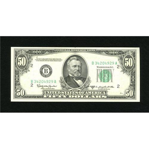 Fr. 2111-B $50 1950D Federal Reserve Note. Gem C