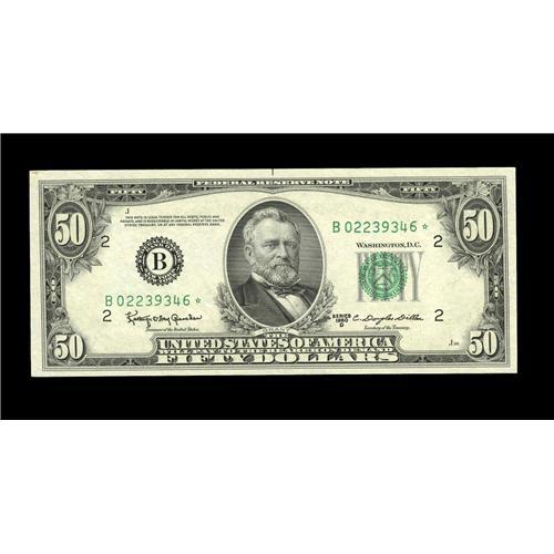 Fr. 2111-B* $50 1950D Federal Reserve Star Note. Choice Fr. 2111-B* $50 1950D Federal Reserve Star N