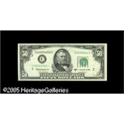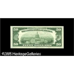 <B>Fr. 2111-C* $50 1950D Federal Reserve Note. About Uncirculated.</B></I><BR>A center fold is found on this scarce star. Lot:16264