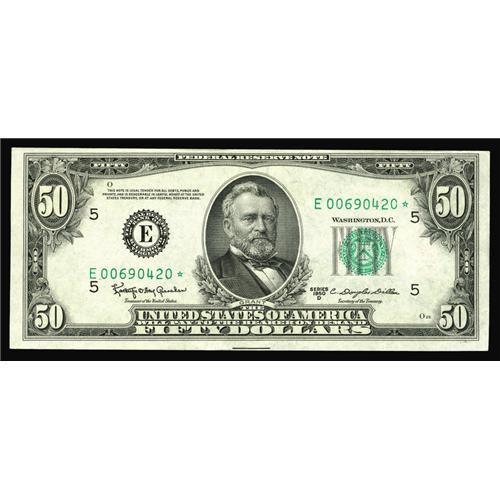 Fr. 2111-E* $50 1950D Federal Reserve Note. Choice Unci Fr. 2111-E* $50 1950D Federal Reserve Note.