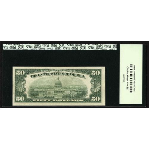 Fr. 2112-B* $50 1950E FRN STAR. PCGS Choice AU55 Fr. 2112-B* $50 1950E Federal Reserve Note. PCGS Ch
