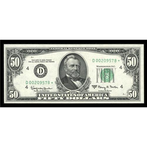 Fr. 2113-D* $50 1963A Federal Reserve Note. Choice Cris Fr. 2113-D* $50 1963A Federal Reserve Note.
