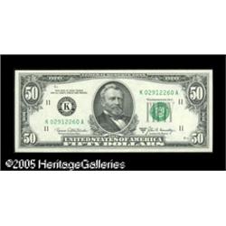<B>Fr. 2116-K $50 1969B Federal Reserve Note. Gem Crisp Uncirculated.</B></I><BR>Broad margins corral this scarce, but well preserved Dallas $50. Lot:16281