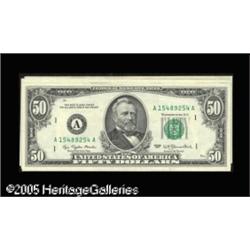 <B>Fr. 2119-A, B (2), C, D, E, F, G, I, L (2) $50 1977 Federal Reserve Notes. Crisp Uncirculated or Better.</B></I><BR>One Crisp Uncirculated note has a small amount of teller ink on the face, while the only notes below the assigned grade are the E-A note in AU and the I-A note in Fine.<BR> 11 notes Lot:16287