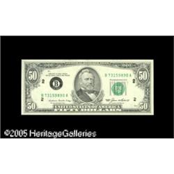 <B>Fr. 2122-B $50 1985 Federal Reserve Note. Choice Crisp Uncirculated.</B></I> There is a distinct doubling of the Federal Reserve bank seal and district digit "2" . Lot:15227